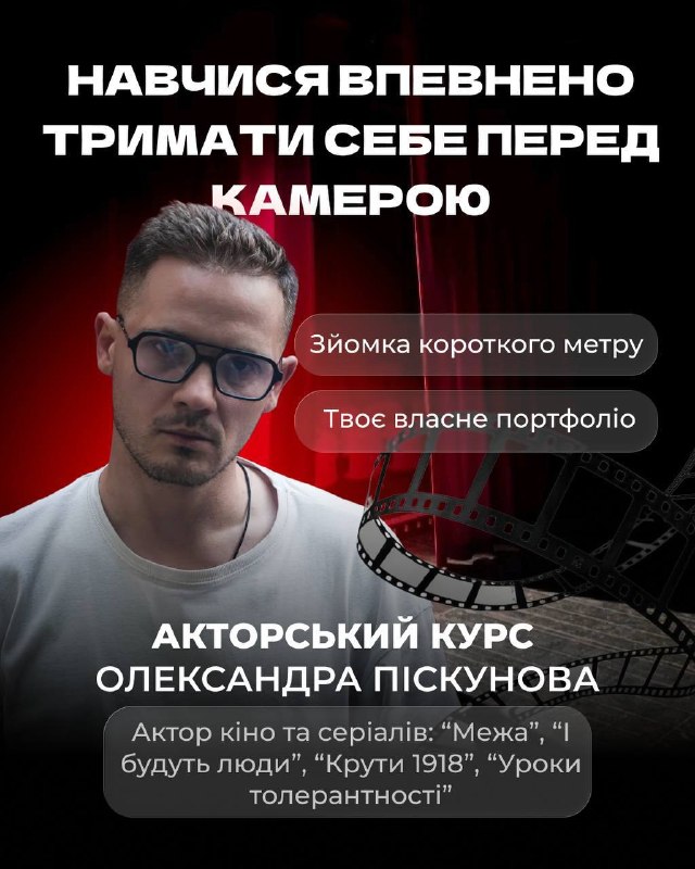 На курсі ти: — навчишся працювати з емоціями та тілом — зрозумієш, як поводитись у кадрі — прокачаєш сценічну мову та впевненість — спробуєш себе в реальних акторських завданнях — отримаєш досвід, який потрібен для кастингів