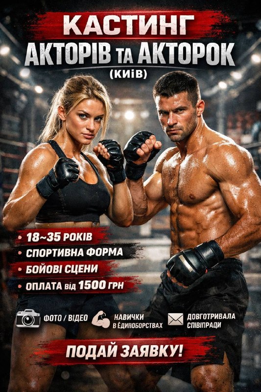 Для проєкту з відеозйомок коротких відео з елементами бойових мистецтв шукаємо нових акторів та акторок, які ОБОВʼЯЗКОВО володіють навичками одного або кількох видів єдиноборств (карате, тхеквондо, дзюдо, кікбоксинг, MMA, BJJ тощо).